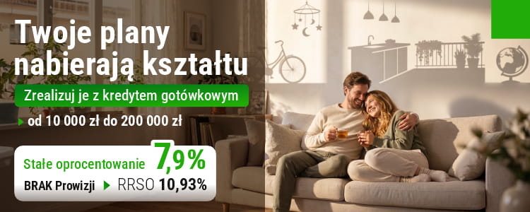 * W oparciu o przykład reprezentatywny kredytu w wysokości 40 000,00zł, z terminem spłaty 84 miesięcy i zabezpieczeniem w postaci ubezpieczenia kredytobiorcy na życie oraz trwałą i całkowitą niezdolność do pracy w wyniku choroby lub nieszczęśliwego wypadku: Rzeczywista Roczna Stopa Procentowa (RRSO) wyniesie 10,93%; całkowita kwota kredytu 36 942zł; całkowita kwota do spłaty 52 202,60zł; oprocentowanie stałe 7,90% w skali roku; całkowity koszt kredytu 15 260,60zł (w tym odsetki 12 202,60zł, prowizja 0,00zł; składka ubezpieczeniowa 3058,00zł – wpłacana jednorazowo w dniu uruchomienia kredytu); umowa zawarta na 84 miesięcy; harmonogram spłat – 84 raty, w wysokości: 1×621,45zł, 82×621,46zł i 1×621,43zł.. Decyzja o udzieleniu kredytu uzależniona jest od wyniku oceny zdolności kredytowej Klienta.